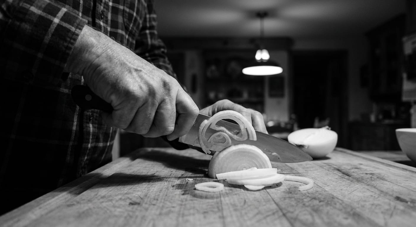 Ze vertelt over haar dag. De ouders. De leerkrachten. Het kind dat heeft geslagen. Het kind dat werd geslagen. De inspectie die langskomt. Ik luister. Ik knik. Ik snijd de ui als ze me vraagt de ui te snijden.